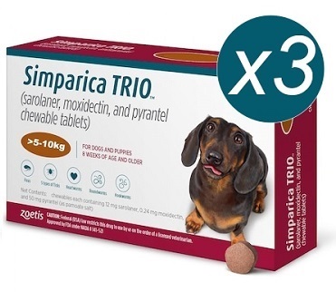 • SIMPARICA TRIO CAINI 12 MG (5-10 KG) - 3 COMPRIMATE MASTICABILE