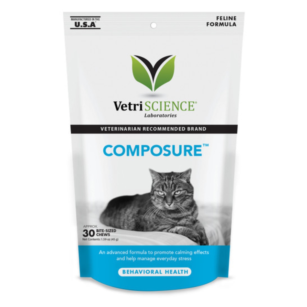 • VETRI SCIENCE Composure Felline, Bite-sized Chews, suplimente calmante pisici - 30 CPR MASTICABILE